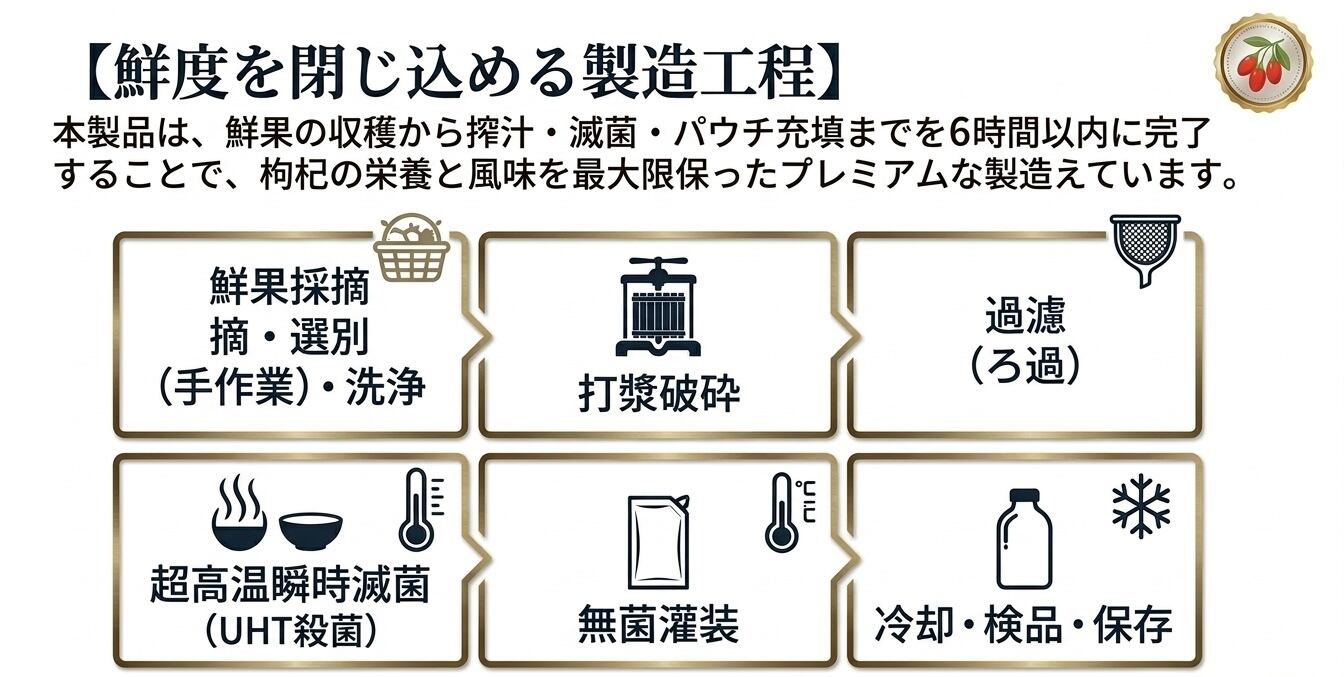 長い日照時間と昼夜の寒暖差が、クコの実一粒一粒に豊かな栄養を凝縮させます。